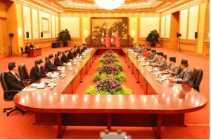 अहिले दुई मुलुकका प्रधानमन्त्रीस्तरमा द्विपक्षीय भेटवार्ता सुरु भएको छ । त्यसपछि हस्ताक्षर समारोह हुनेछ । प्रधानमन्त्री ओलीले आजै चीनका राष्ट्रपति सी जिनपिङसँग भेटवार्ता गर्नुहुनेछ ।